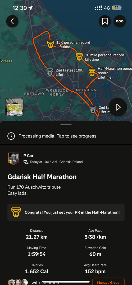 I've just finished the Gdańsk Half marathon, a brilliant event that starts and finishes in the Lechia Gdańsk/Polish Women's team stadium built for Euro 2012.