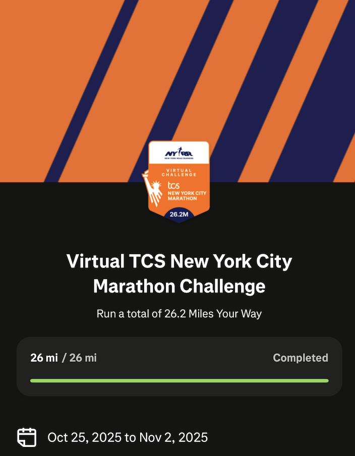 The run itself was a bit laboured on my part this time, for whatever reason I wasn't feeling the flow, but I had had a late night playing cards with my colleagues! Still, I got a respectable time for my first go (27:30). My training at the moment is now geared towards my next race entry - a marathon in New York on 29th October (but virtual!) and a 10k race on 11th Nov. I'm hoping to beat my all time best in this 10k of 51:40 (on a treadmill). I think I can run it close - sorry for the pun. I'm training most days, sometimes 2 or 3 times a day, and hoping it'll combine to be enough.